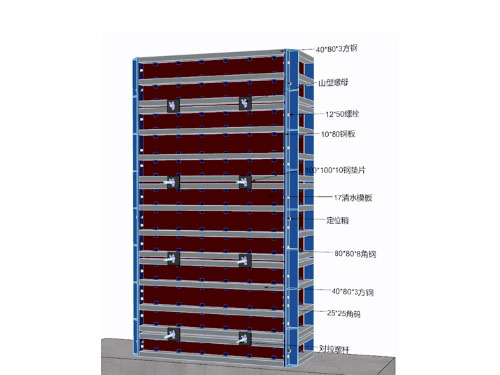 钢框木模板体系结合了钢模板与木模板的优点,钢框提供刚性支撑,木模板提供平整的浇筑面, 模板单元标准化,可灵活拼装成不同尺寸,适应多样化的清水混凝土造型需求(如异形结构、大截面柱墙等)。